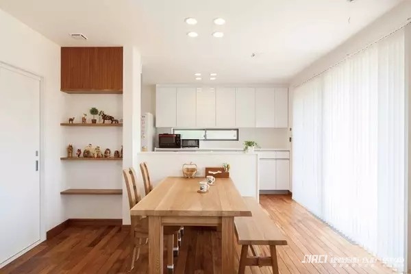 三、通過地麵地磚的顏色或材質的不同來區別廚(chú)房和餐廳兩個區域。